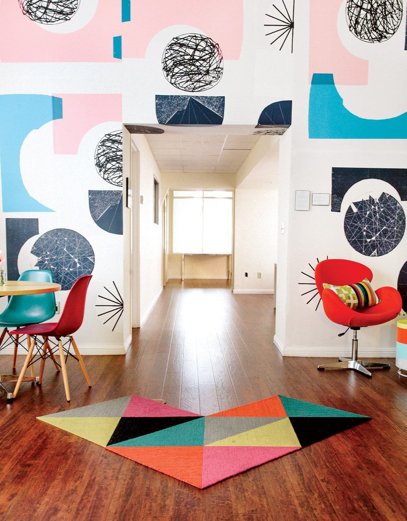 Fans des créations géométriques et colorées du Designer britannique Neasden Control Center 'NCC', créez à votre tour de véritables compositions géantes grâce à ces Stickers Géants en Textile auto-adhésif.