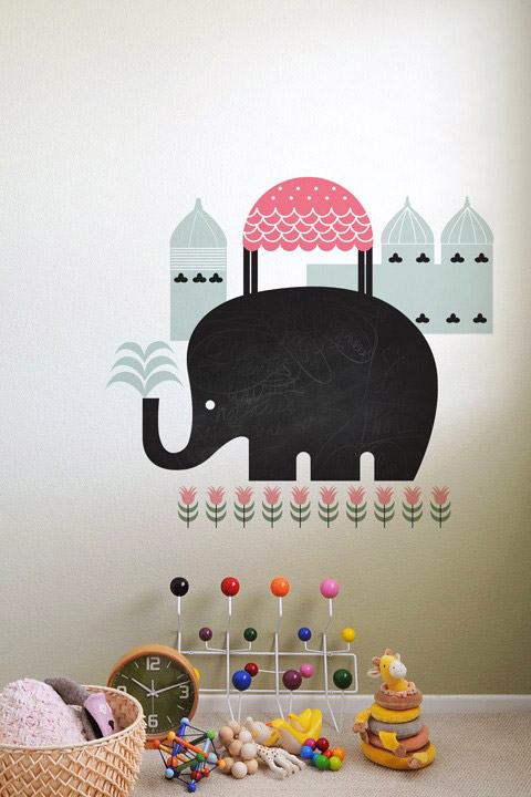 Cet éléphant en ardoise autocollante est livrée avec de la craie pour laisser libre cours à leur immagination dès la pose.