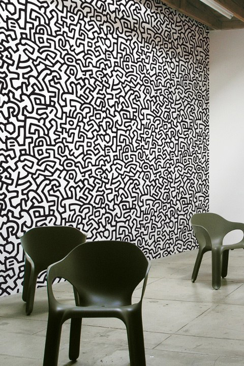 Indémodable et véritable signature de Keith Haring, ce décor, à l'origine peint directement à même les murs et les plafonds de la boutique, est encore utilisé aujourd'hui par la fondation Keith Haring lors de grandes expositions internationales (Paris/NewYork/Tokyo). En savoir plus »