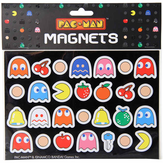Retrouvez tous les protagonistes du célèbre jeu d'arcade Pac-Man, cerises, fantômes, pac-gomme et recréez vos propres scènes sur la porte de votre frigo.