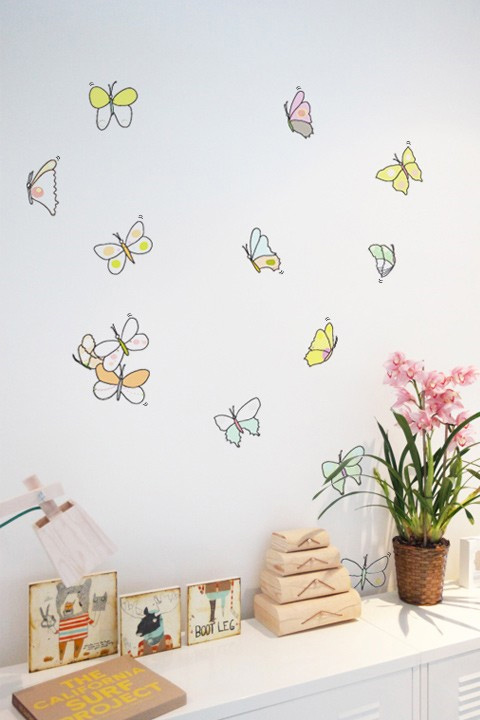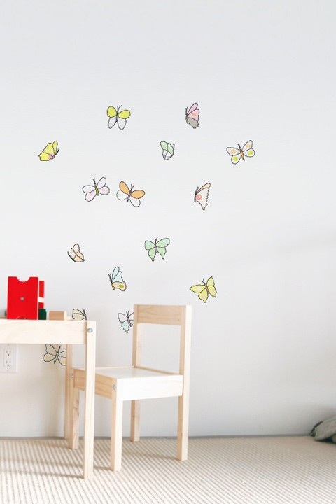 Habillez les murs de vos enfants avec cette très belle et poétique série de stickers papillon, aux couleurs douces et variées et dessinées comme des aquarelles.