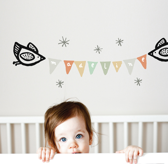 Créez vous-même votre propre fanion ou bannière comme si elle avait été peinte à la main, avec des motifs et des lettrages dessinés par Wee Gallery, la collection d'art mural pour bébés .