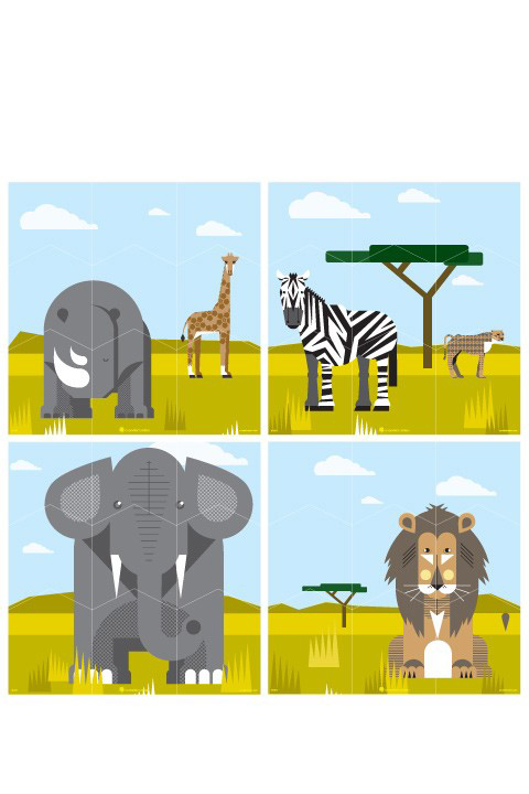 Stickers Muraux et stickers deco Puzzle Safari chez stickboutik.com