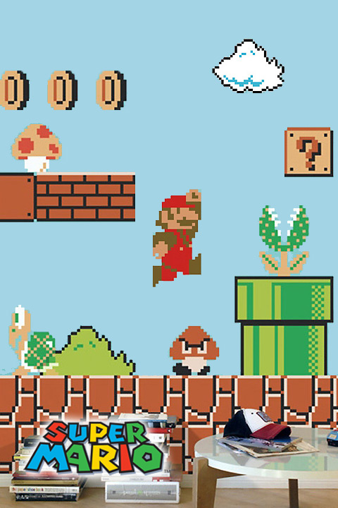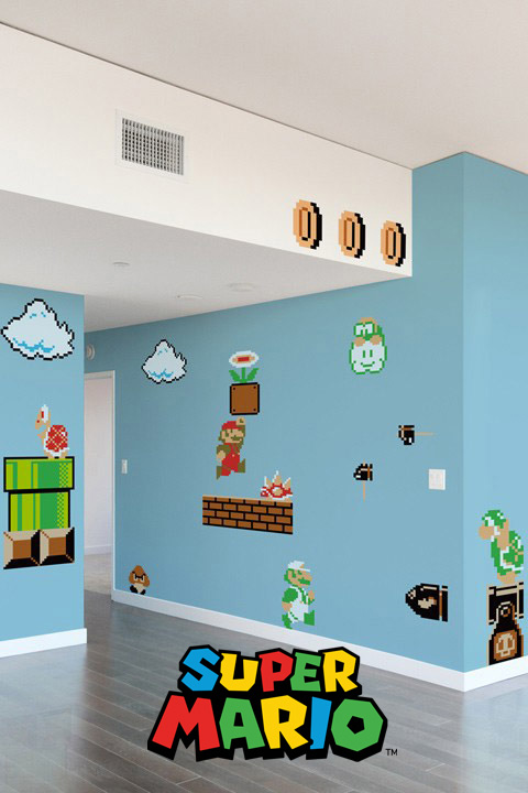 Créés à partir des motifs 8bit du jeu original sur NES, ces stickers muraux géants, permettent de transformer facilement et en quelques minutes une chambre ou une salle de jeu, en véritable déco Super Mario Bros, avec une petite touche de nostalgie rétro.