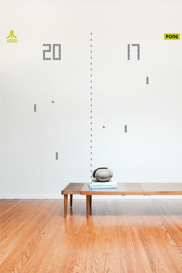 Créés à partir des mêmes graphiques 8-bits que le jeu d'arcade Pong original, ces stickers muraux géants Atari sont repositionnables, permettant de créer et de re-créer à volonté sa propore fresque murale Atari.