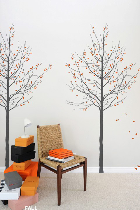 Cet élégant sticker mural en forme d'arbre change de couleur avec les saisons.