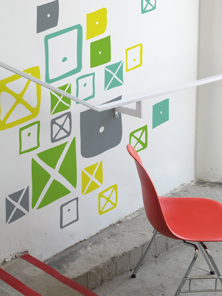 Récemment restaurés à partir d'archives par la fille de Charles, Lucia EAMES, les stickers muraux 'Crosspatch' sont une reproduction fidèle de leurs croquis, véritable traduction graphique de leur style intemporel.